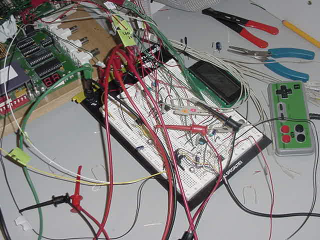 In this project, the hardware served as doing much of the support functions that were necessary for the project to function, but should not or could not have been implemented in software. The hardware dseign did the work that was necessary to keep the software straightforward, understandable, and predictable. The Analog-to-Digital Converter (ADC) that Matt gave us was a Maxim 195BCPE, a 16-bit serial ADC. The first challenge for the hardware was to implement a shift register to capture the data and present it to the data bus all 16 bits at a time so that it could be read and processed as a normal halfword by the software. After dividing the clock down to 1.25 MHz (the maximum clock frequency that the ADC allowed was 1.7), we noticed that the EOC# signal "framed" the data bits. With the ADC that we worked with in class, the only important edge of EOC# was the falling edge, which we used to trigger our interrupt; the rising edge was of no concern. However, with this ADC, the rising edge of EOC# occurre precisely when then first data bit was valid, and successive data bits were presented on rising clock edges. Since we were generating the clock inside of our hardware design, all we needed was two 8-bit serial to parallel shift registers (74x165S) with the clock as the 1.25 MHz clock going to the ADC and the Clock Enable (CE) as EOC#. The serial in for the first SR was the Data bit coming from the ADC, and the last parallel out bit was tied to the serial in on the next SR, creating the 16-bit shift register. Then, when EOC# fell, it would trigger IRQ1, which launched our interrupt service routine (ISR) that grabbed the data off of the outputs to the shift register. We used a read to address 0x3000000 to get the data from our ADC. The trick was that the data was guarenteed to be valid when EOC# fell because, from the ADC's perspective, it was no longer framing the data, and from the hardware's perspective, CE was no longer asserted, so the SR's were no longer shifting any new data bits, but holding the current ones. The last step of the ISR was to write to address 0x3000000, which triggered the START signal for a new conversion to occur, indicating that until the next falling edge of EOC#, the data will not be valid. The next piece of hardware that requires support from our hardware design was the Digital-to-Analog Converter (DAC). We also obtained a DAC from Matt, who gave us a Maxim 541, a 16-bit serial DAC. The DAC worked on a much higher clock of 10 MHz,however we found that the most important aspect of getting the DAC to work properly was meeting all of the timing specifications. The first element needed was a parallel-to-serial Shift Register, and Xilinx did not seem to have one of those, so we built one using 16 D flip-flops and 2-to-1 multiplexors. The SR was clocked off of the 10 MHz clock for the DAC, and was given 16-bits of data from the data bus to shift out one at a time. The S_R signal dictated whether or not the data was being loaded into the 16 flip-flops or being shifted out. The timing for the DAC specified that the Chip Select (CS#) would be held low during the 16 bits that got shfited out. However, this means that the CE for the SR would be held high for at least one additional clock cycle so that the data could get shifted in, and would have to be together with the S_R signal indicating load rather than shift. Additionally, since TS# would come with the faster 20 MHz, for our address decoder, we needed to hold it for twice as long so that it would always be aligned with the same edge of the slower 10 MHz, and not screw up the timing once and a while. In order to get the signals to be held for hte right length at the right time, an SR flip-flop was set when the DAC write command first came in, and was reset after 16 cycles using a binary counter. For the LCD, we used two 4-bit counters (74x163) to count to 6 to get the timing on the Enable and register select signals to match the timing in the specifications. And for the Nintendo 8 controller, we used Verilog to make a finite state machine that generated pulse and latch signals that corresponded to the specifications. Then, to capture the data, we used an 8-bit serial-to-parallel shift register whose output was tied to an 8-bit register. The MSB output of the shift register was then tied to IRQ1, so in the event of a button being pushed, a zero would get shifted though and trigger the interrupt. Then, the ISR would read the register that held the full byte of the buttons' state. |