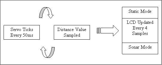 servo, sampling of distance sensor every move of the servo, and the LCD
