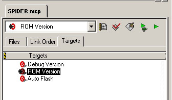 6. Compile your project (press F7). When you compile make sure the "ROM Version" target has the arrow pointing towards it. If it does not then you need to select that target from the drop-down above it.