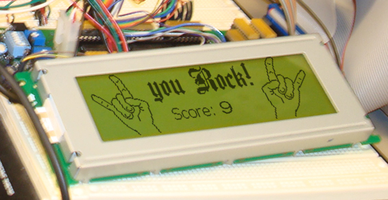 To interface to an actual (playable) guitar such that it is used as the primary controller of a simplified version of the existing game: Guitar Hero. Because the existing game GuitarHero, is played with a video game controller in the shape of a guitar, we figured, why not use a playable guitar? Our main goal was to make the actual game as real as it could be. Introducing an actual guitar to the game's overall interface achieves this goal for us. When implemented, it would allow the user to enjoy both the gameplay and hone his/her skills on a guitar.