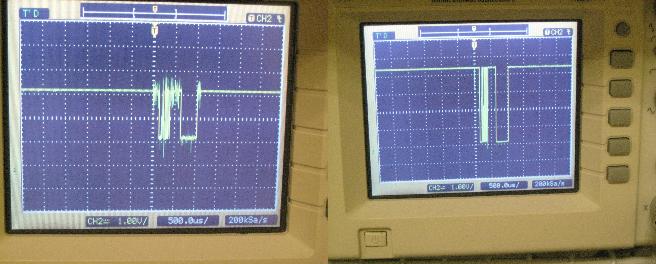 A major issue is that all signals will be driven on to the data line. This means that we needed to set up a comparator circuit to set up a threshold of high versus low. Below is a before/after comparison of the signal quality.