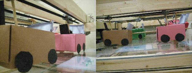 - Note: We used the same pulley system for the cars, as we did to give the frog movement in the x direction (We simply replicated this system three times because we had three rows of cars).