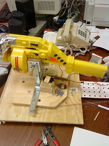 A Nerf Gun that is controlled by the N64 Controller that is used to fire at targets
