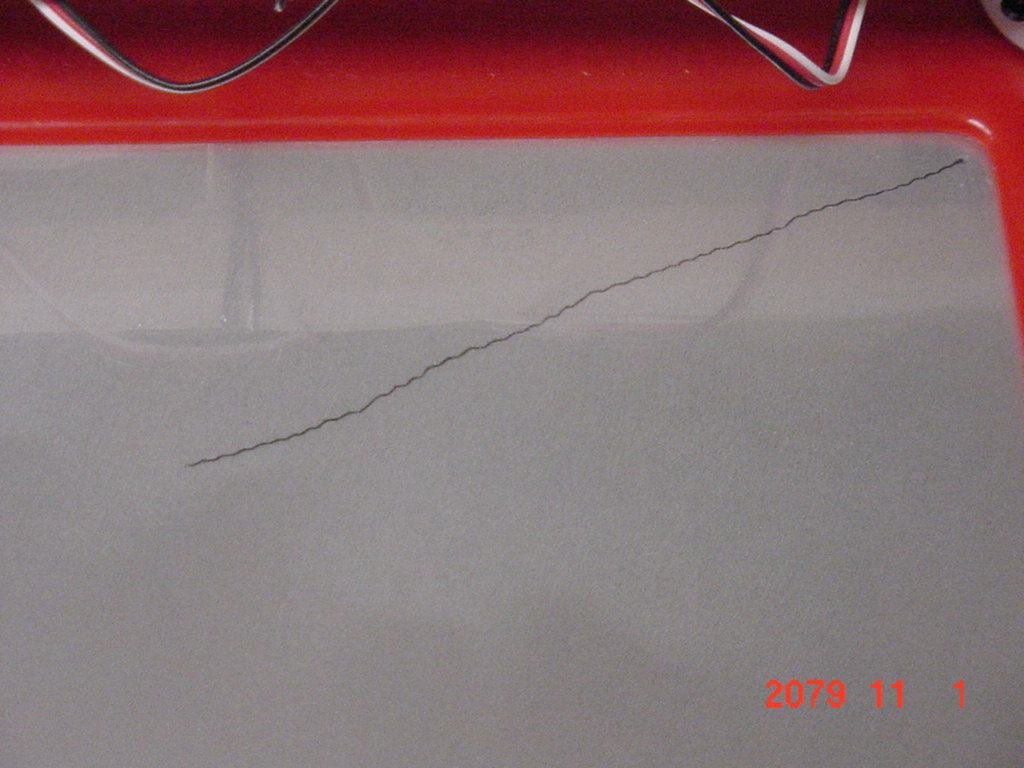 - Etch-a-Sketch hardware -- The Etch-a-Sketch hardware consists of two Futaba S3003 servos that are directly mounted to the Etch-a-Sketch knobs. As packaged, these servos do not have a control throw long enough for our purposes. For this reason, we had to modify the servos so that they could make full turns. After this modification, the servos had three useful signal frequencies. One frequency to turn counterclockwise, one frequency to remain motionless (it turns out no pulse achieves this result better), and a final frequency for clockwise motion.