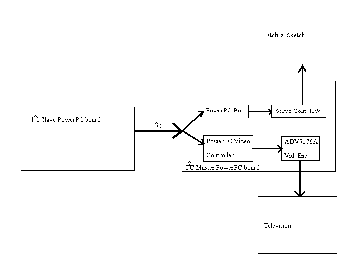 Our project was centered around CAD software. Input for the CAD device was done with a HyperTerminal on a slave I2C PowerPC board, while the output was done through first a Television screen and then a confirmed design was outputted through an Etch-a-Sketch.