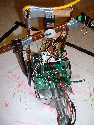 The next difficulty we encountered was getting the pen servo to rotate the correct amounts. Fixing this was basically a matter of trial and error with different frequencies of signal pulses.