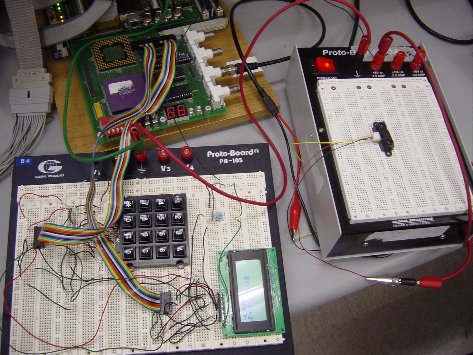 For the keypad, we have connected pull down resistors to the pin corresponding to the rows of the keypad. When we send a high voltage to the pin of a column, buttons which are not pressed will not allow a high voltage to pass through to the corresponding row pins. The values of column are written through the test points on the FPGA board and values of rows are read through the test points of the FPGA board.