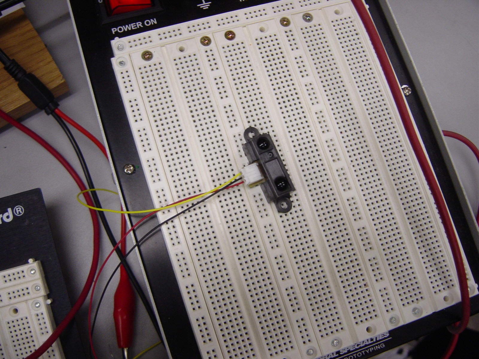The infrared distance sensor (Figure 6) is connected to the analog input 0 of the FPGA board. It is supplied with a 5V voltage and grounded with the ground on the FPGA board.