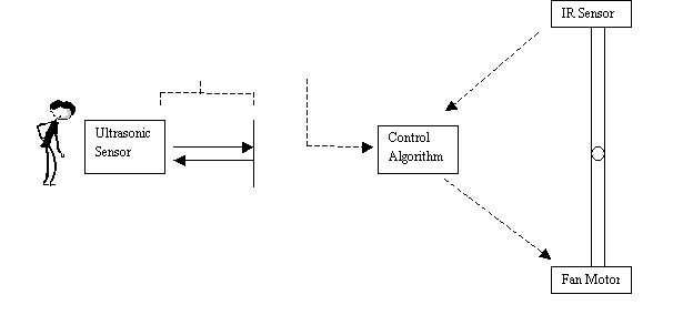 The user sets the desired height using an ultrasonic ranger distance sensor. More specifically, the user specified the desired height by holding an ultrasonic ranger a certain distance from some object (such as a wall or a clean sheet of paper), and once they pressed push-button S1 this distance became the new desired height. (Note that for us height is measured as the distance downward from the IR sensor at the top of the tube).