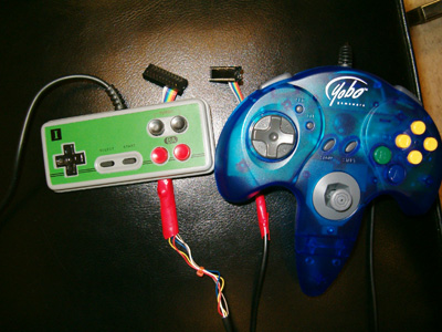 Our beloved Nintendo Controllers...specially adapted to plug into our ports.