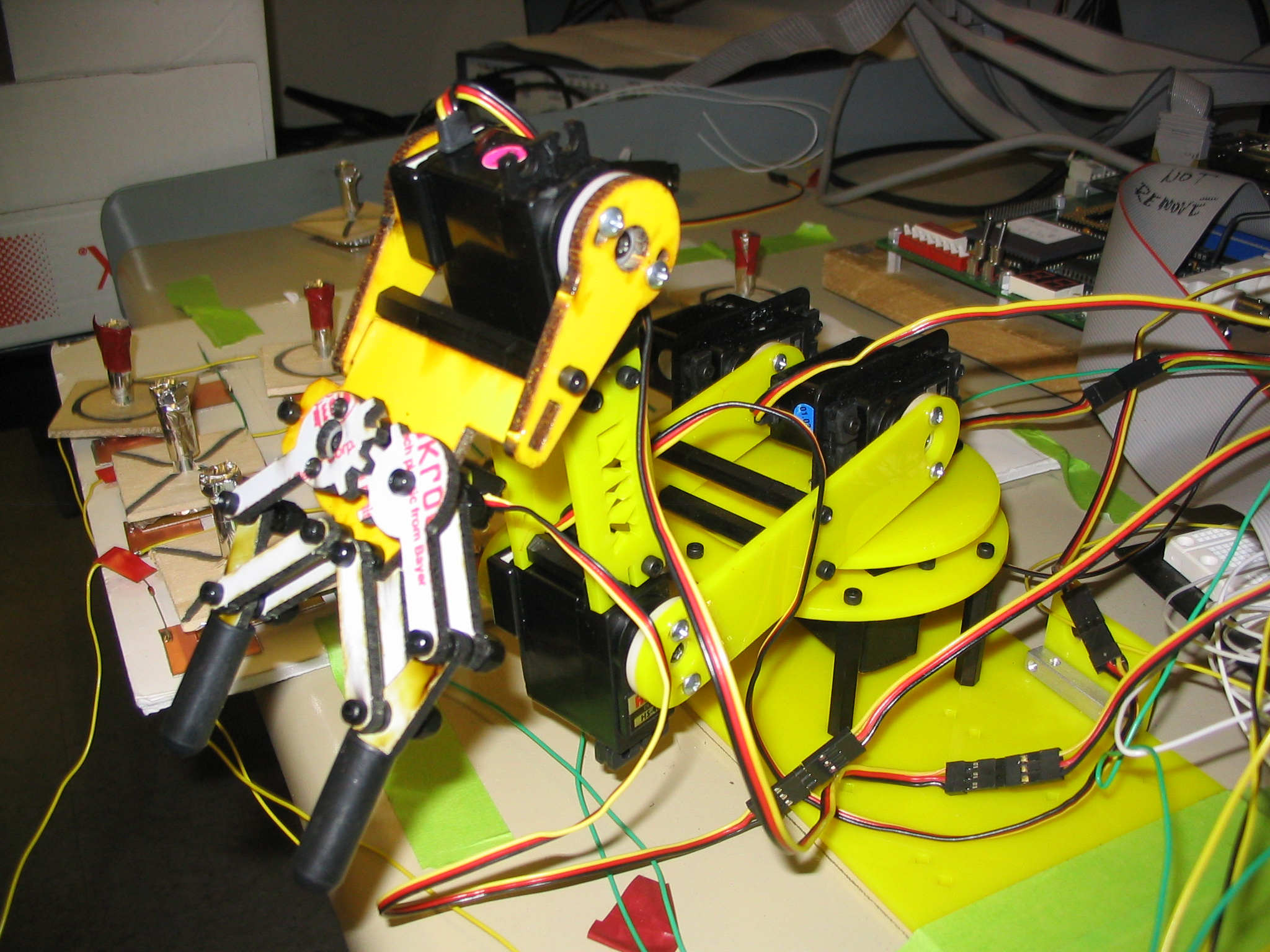 Using this hardware, and a slight modification of the calculator program from lab, we were able to control the robotic arm via the HyperTerminal, and map out the movements necessary to pick up and place all of the computer pieces. This calibration of the robotic arm will be discussed in more detail in the software section.