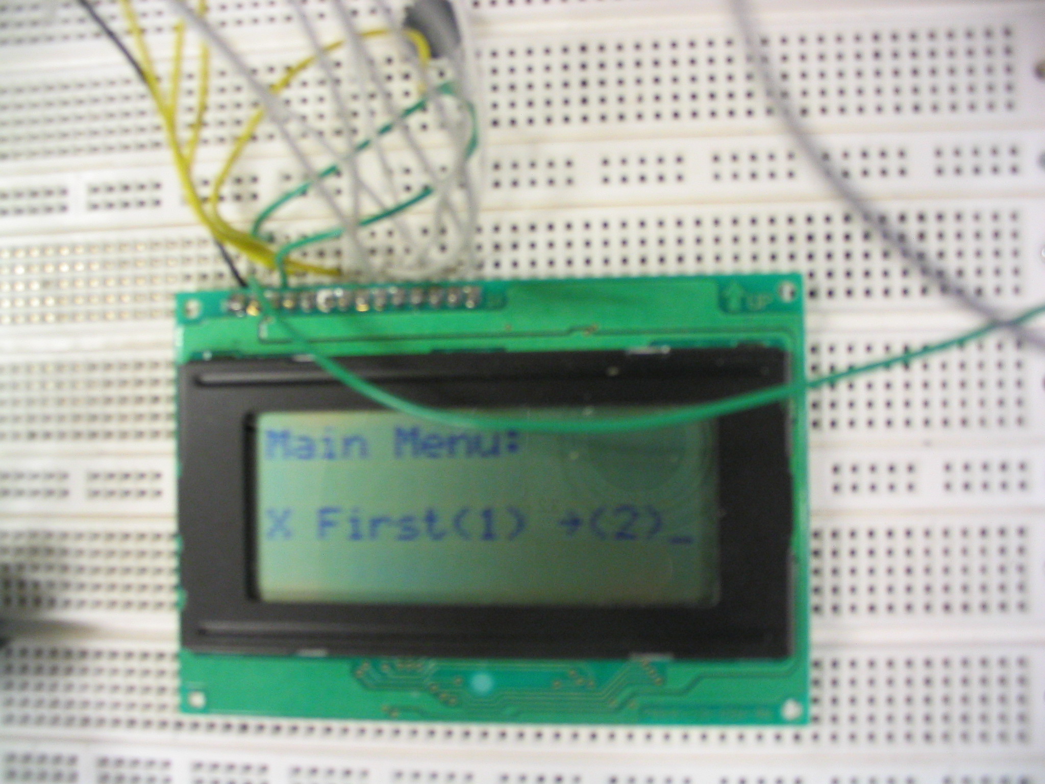 Our other main problem came when trying to interface the LCD. This was the last thing we did, and at first we were only getting a black screen when we turned on the LCD. It turned out we were providing a negative voltage to the contrast, in effect turning the contrast to its highest level. Once that was fixed, our LCD hardware worked fine, and our integration went without problem.