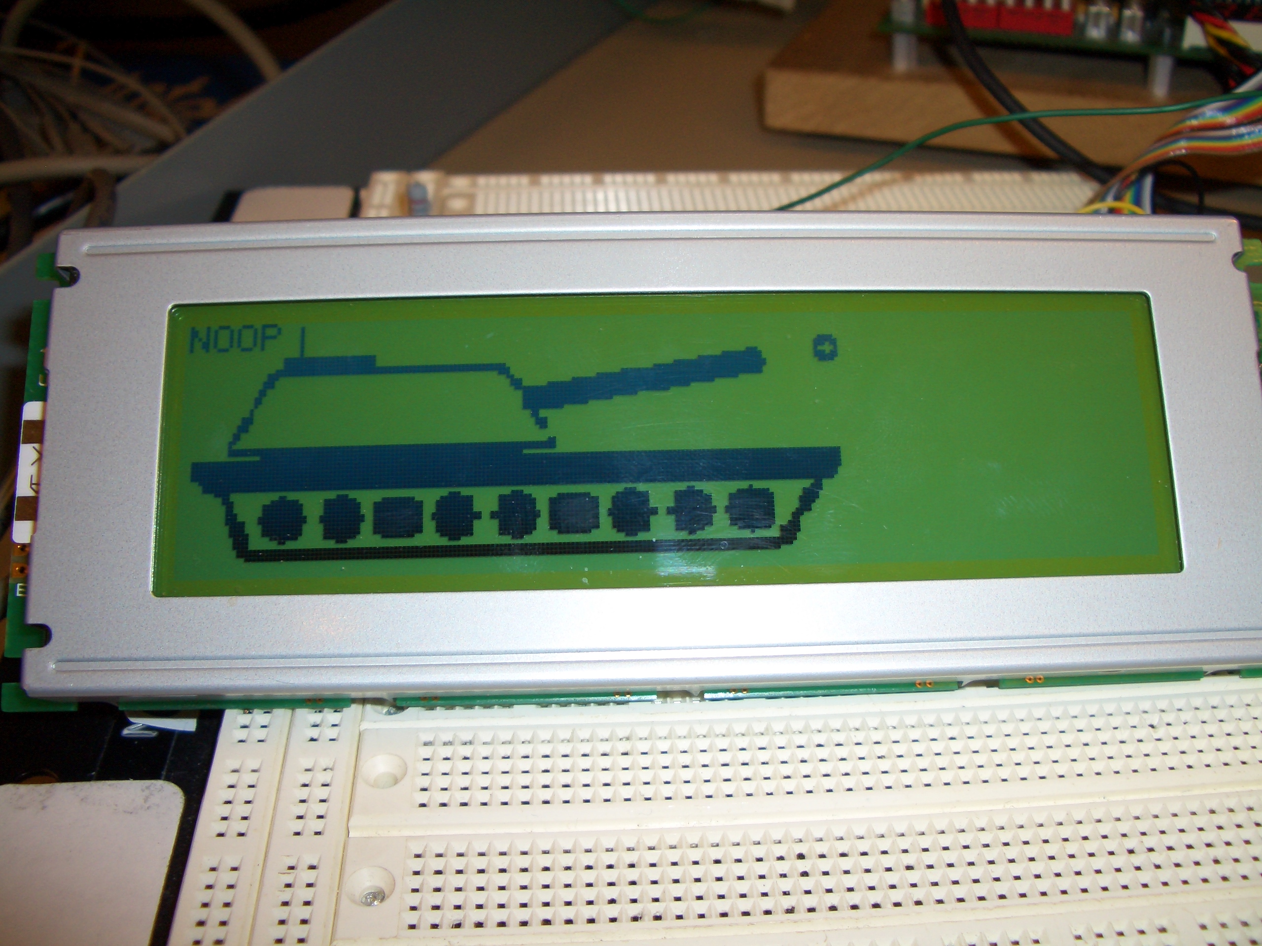 The LCD, showing a picture of a tank: