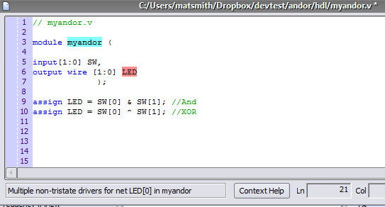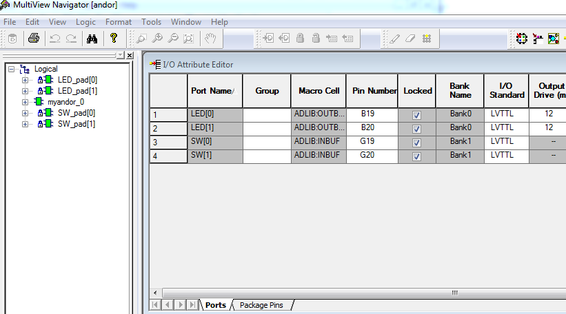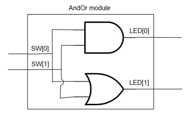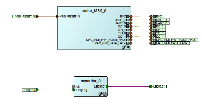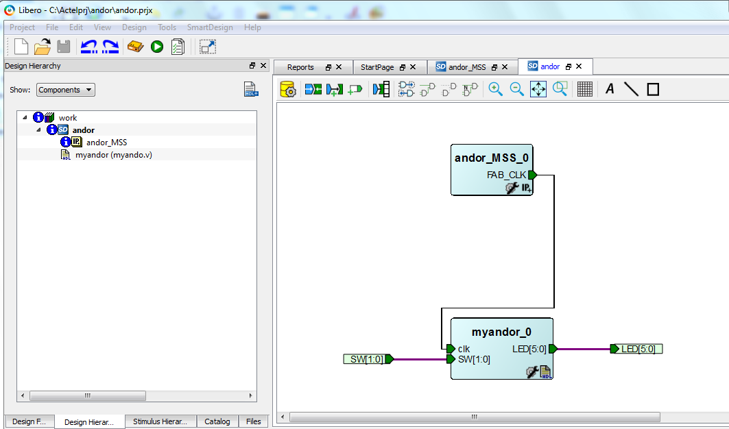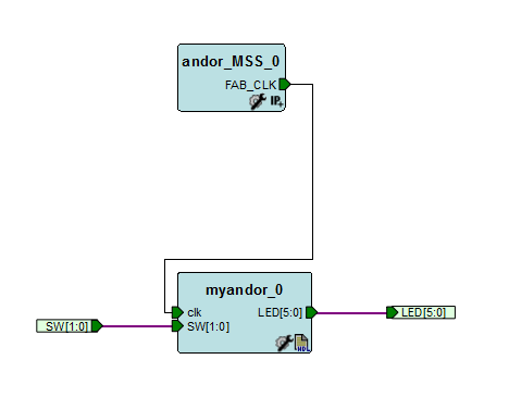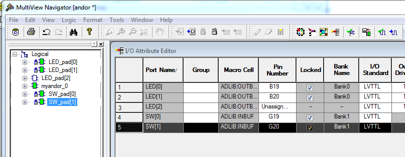 SW[1:0] and LED[5:0]. Make sure that andor is set as the root by