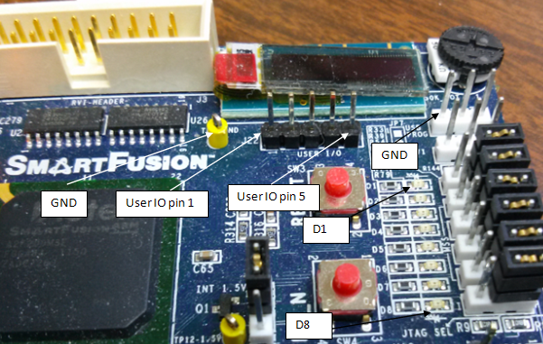 to the physical LED1-8, SW1,2 and user IO 1-5. The figures are specific