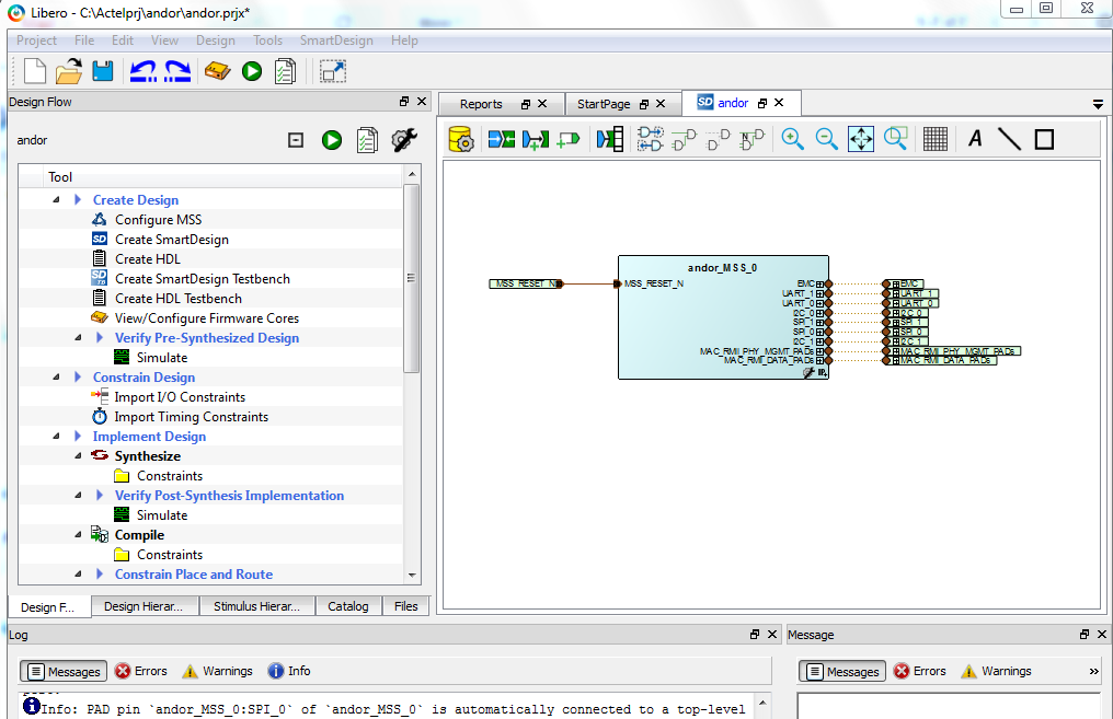 MSS_RESET_N system reset signal. Double click on RESET Management