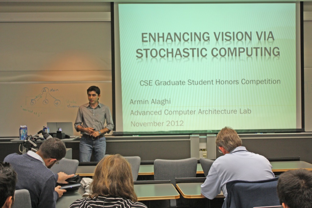Armin Alaghi: "Enhancing Vision via Stochastic Computing" (First Place). Advisor: John Hayes.