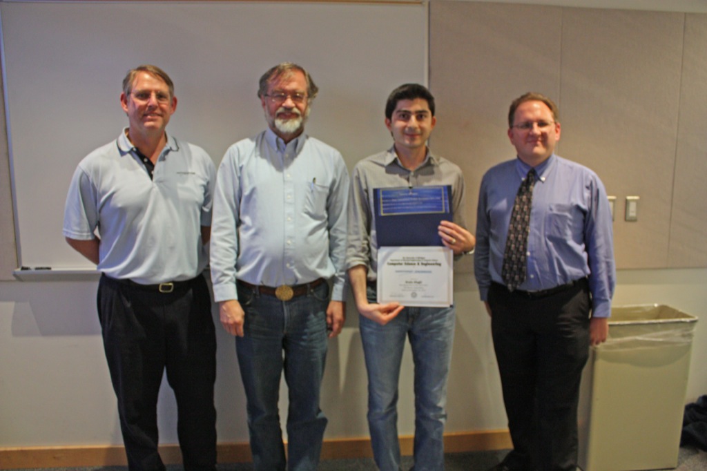 CSE held its ninth annual CSE Graduate Student Honors Competition on November 12, 2012. The competition was the culmination of a process that narrowed the field of entrants to four finalists, each of whom gave a summary presentation on an area of their research. CSE faculty and industry sponsors from Northrop Grumman ranked the finalists' presentations.
